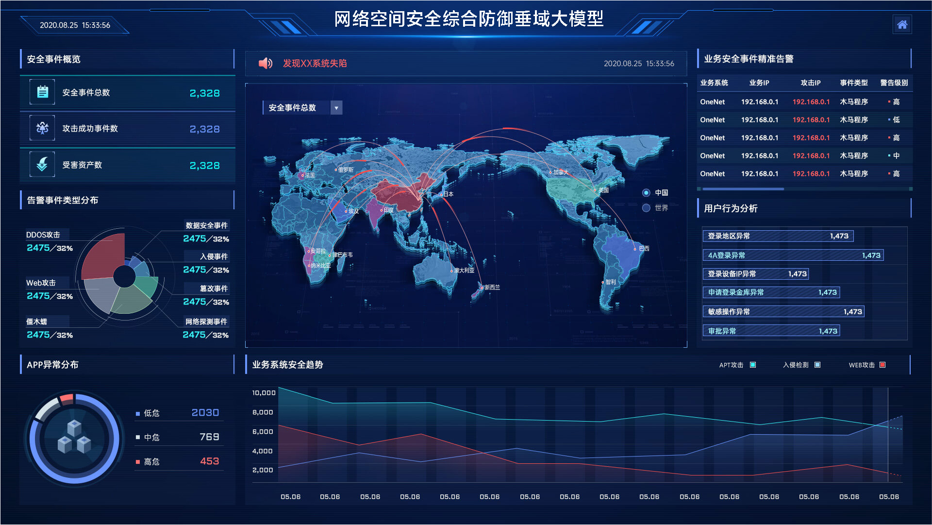 ●多维态势感知: 融合多源异构数据,实时感知网络安全、资产暴露、异常行为等多维态势,并通过可视化呈现。