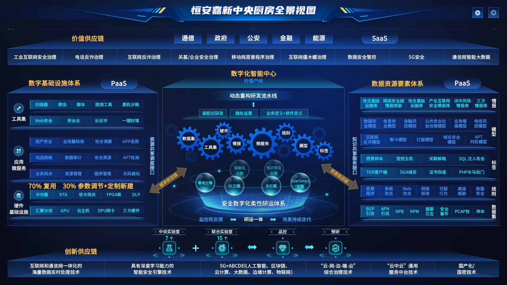 本产品是恒安嘉新云原生的新一代企业全业务数字智能体驾驶舱,集恒安嘉新多年业务管理、安全监测、安全分析、安全治理经验,助力研究院及运营中心鸟瞰整个公司“区域、人员、项目、产品、数据”的整体运营情况。